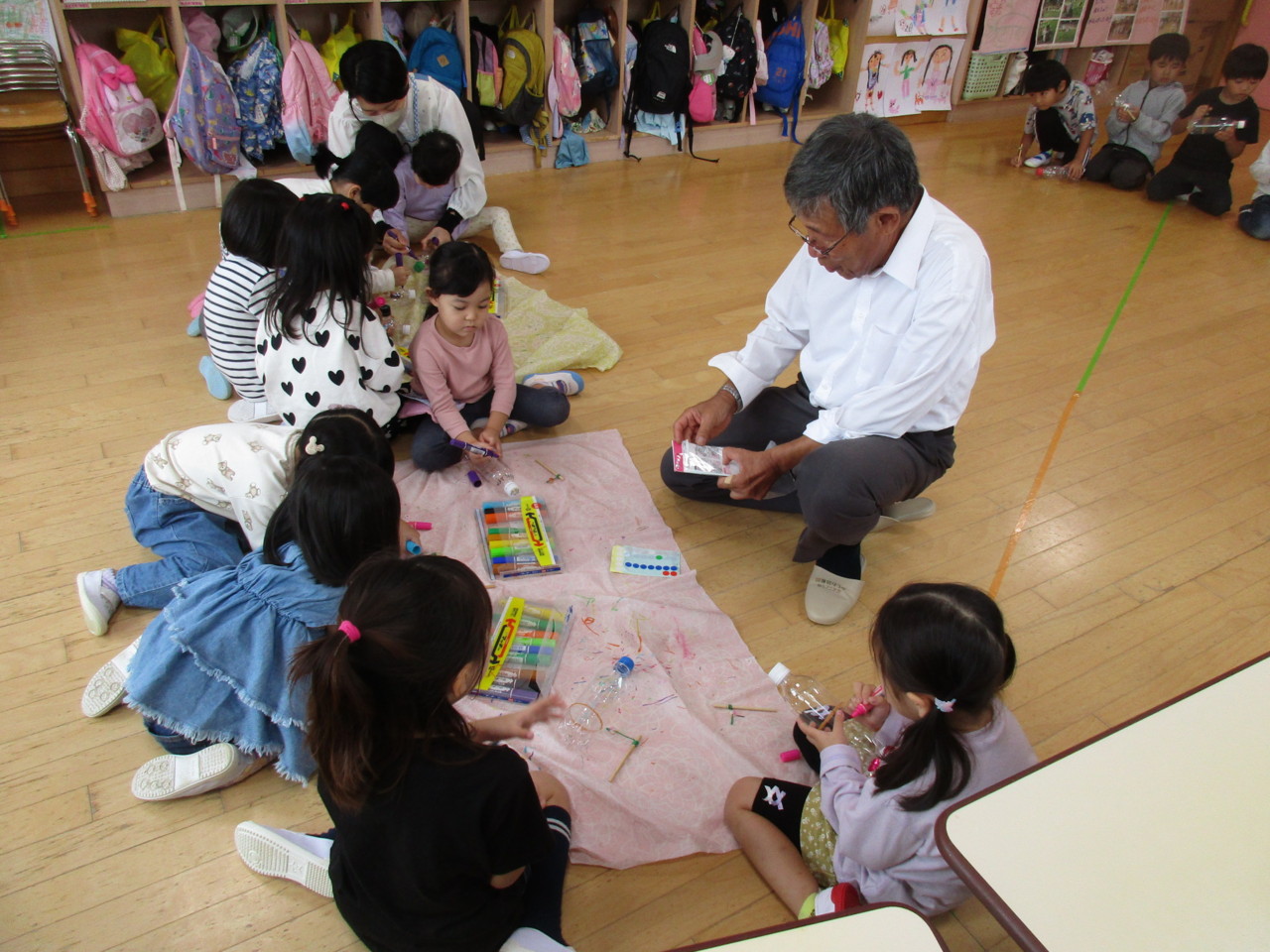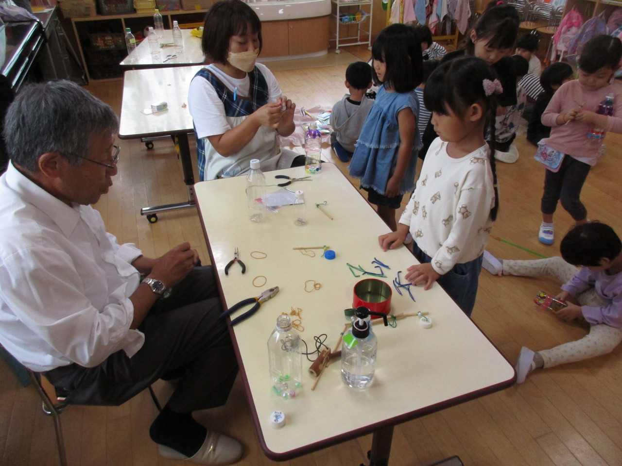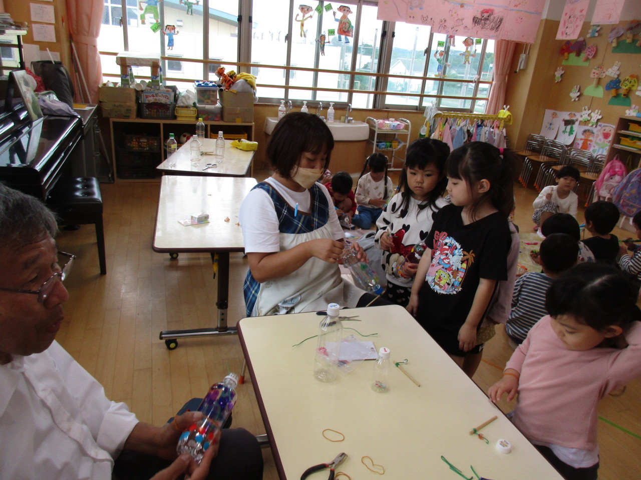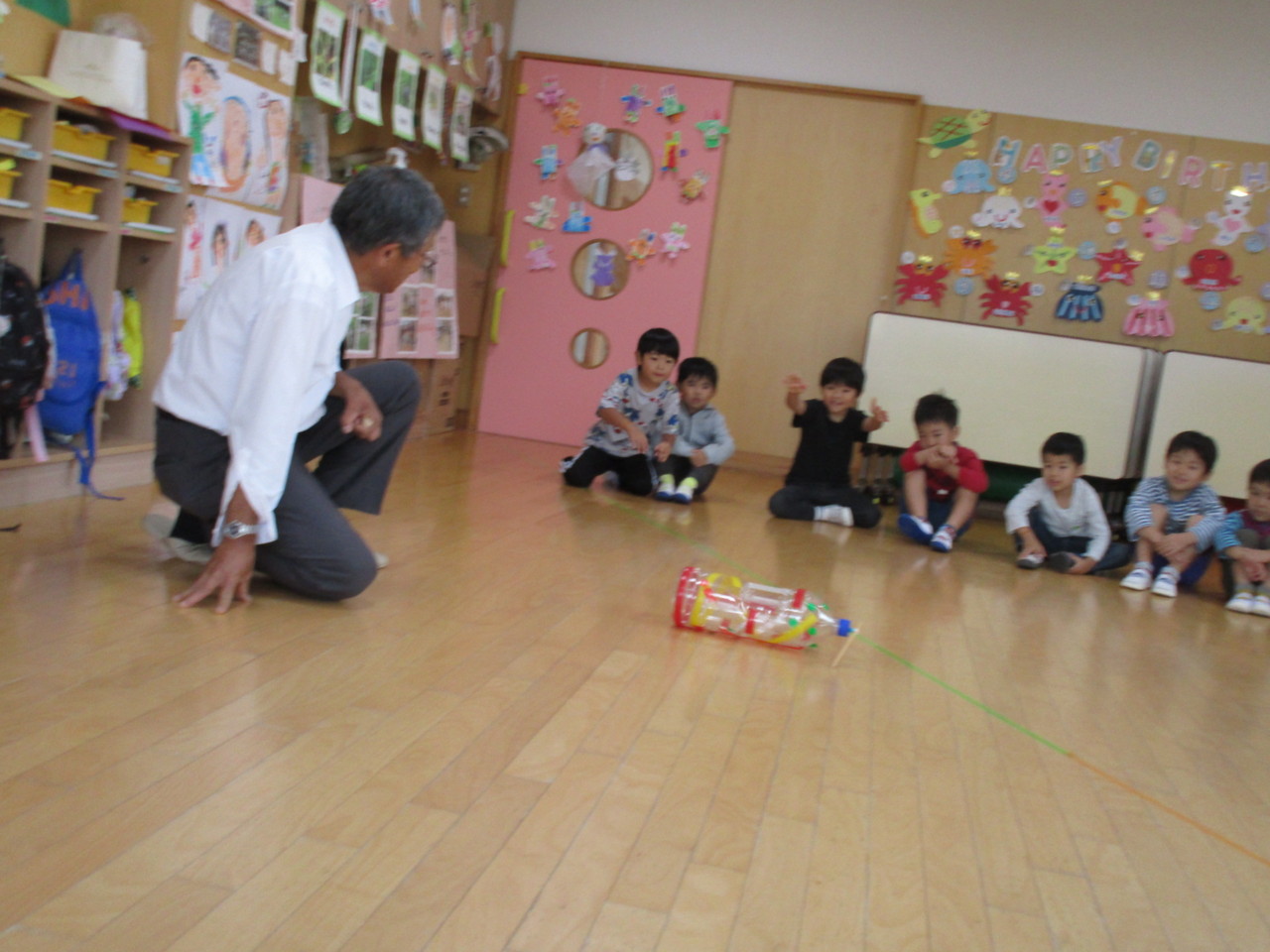うさぎ組(年中組)が、科学遊びで動くおもちゃ作りをしました。
