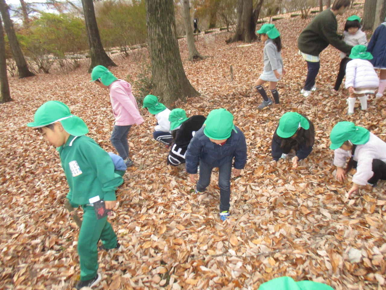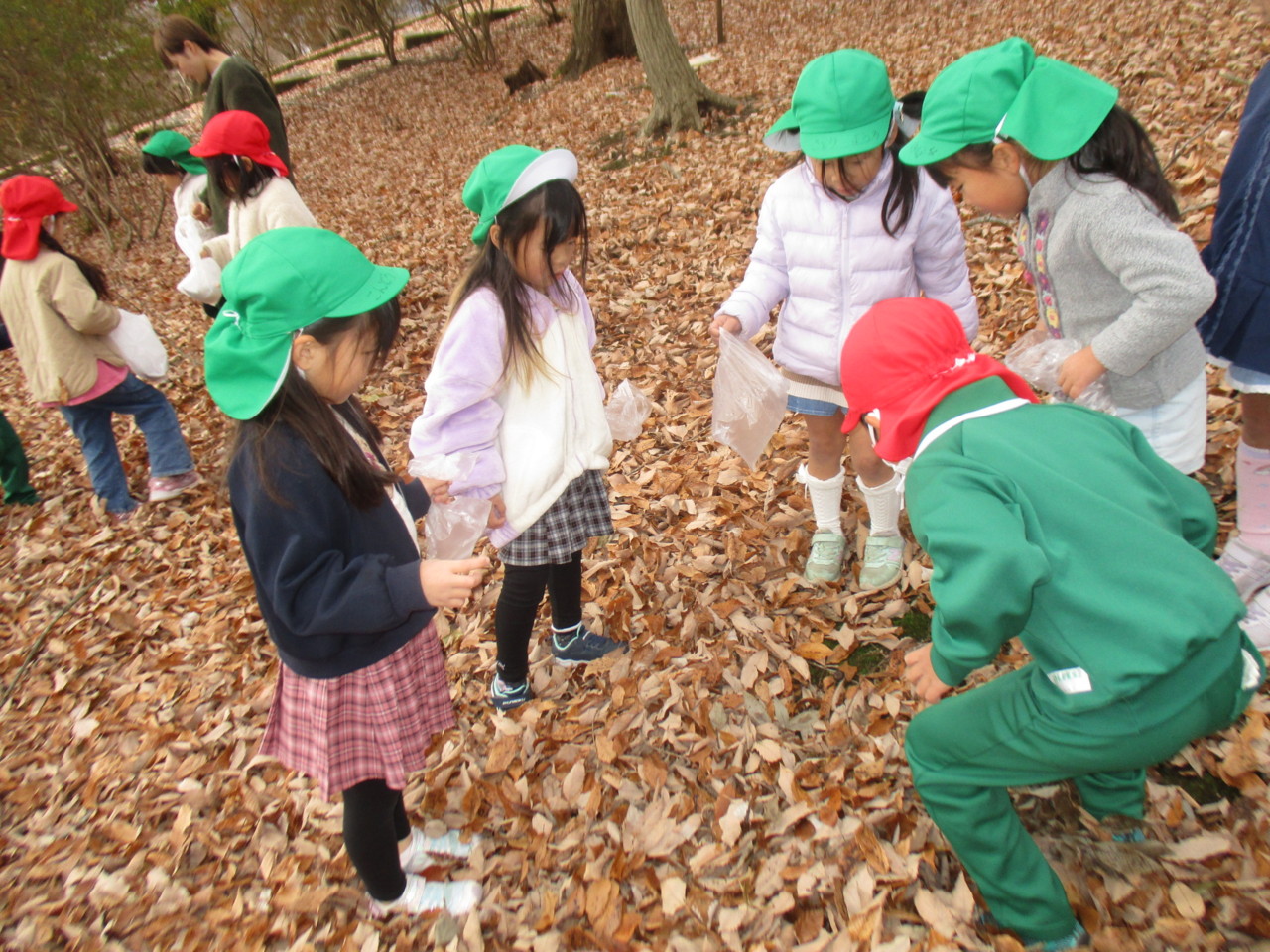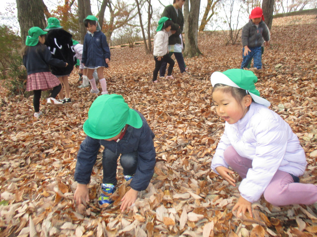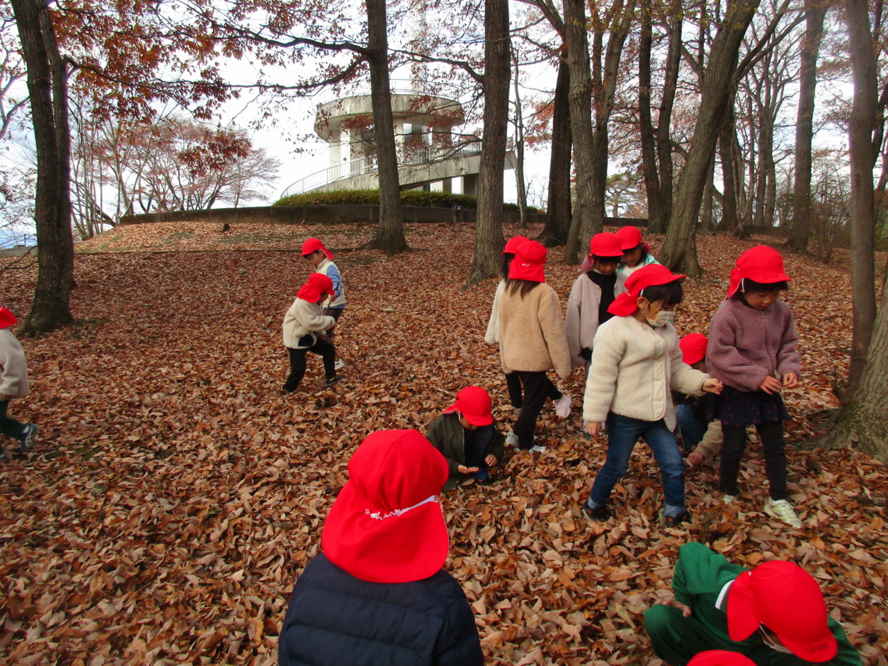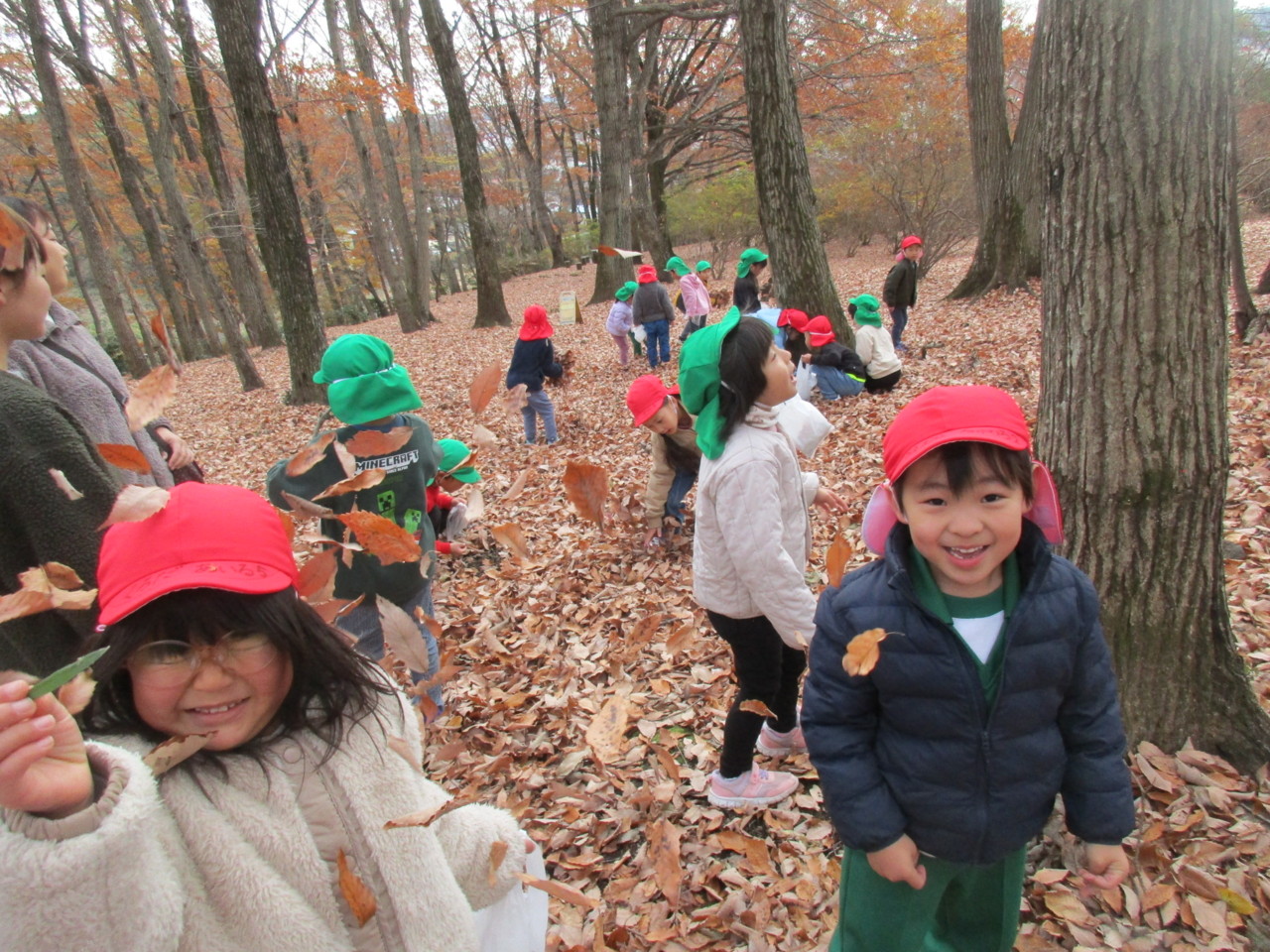 落ち葉を拾ったり、落ち葉のシャワーを浴びたりと秋の自然の中で楽しんできました。