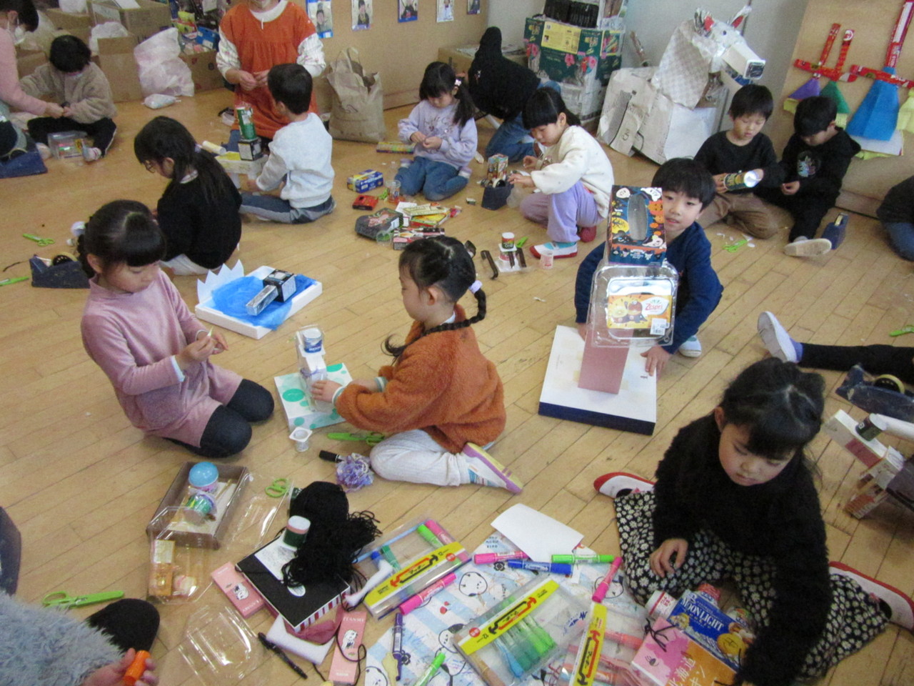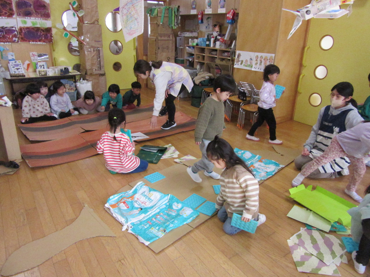 自分で工夫したり、お友達と協力をしたりして作る楽しさを味わいながら活動しています。