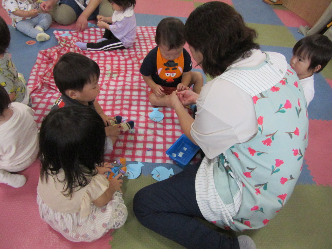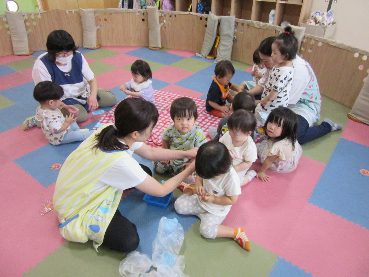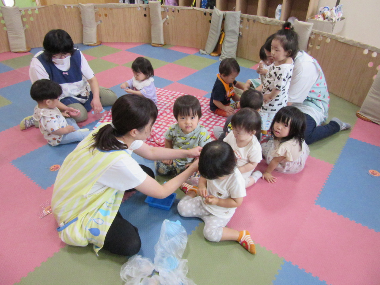 0,1歳児のお友達も、みんなで製作を楽しんでいます。