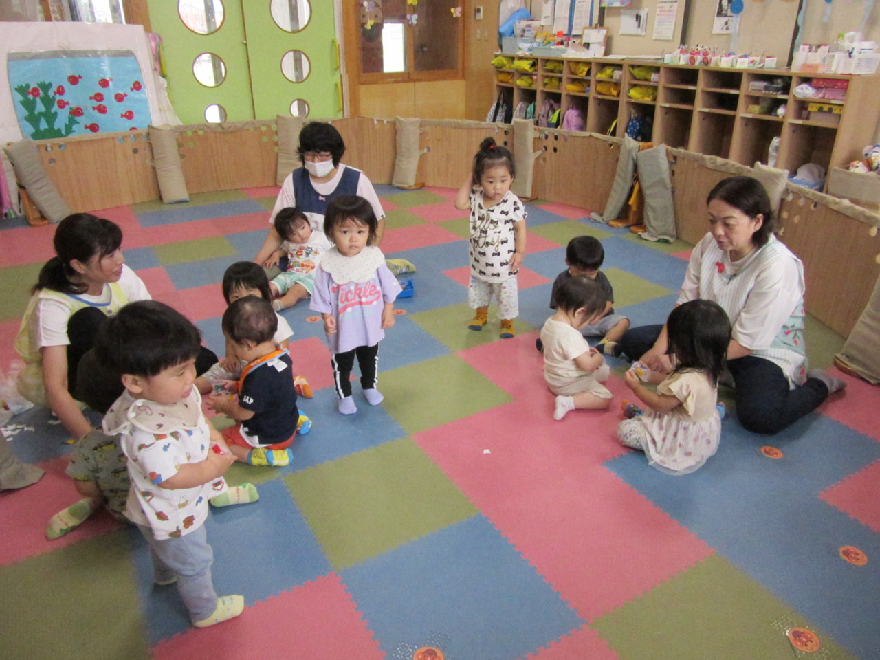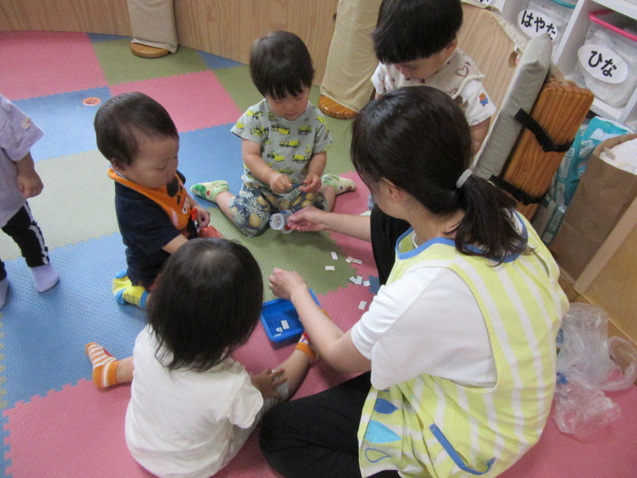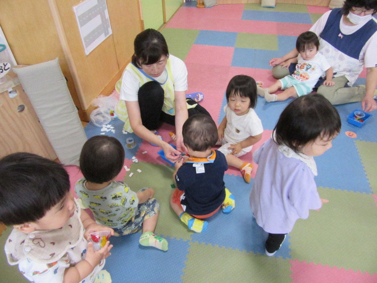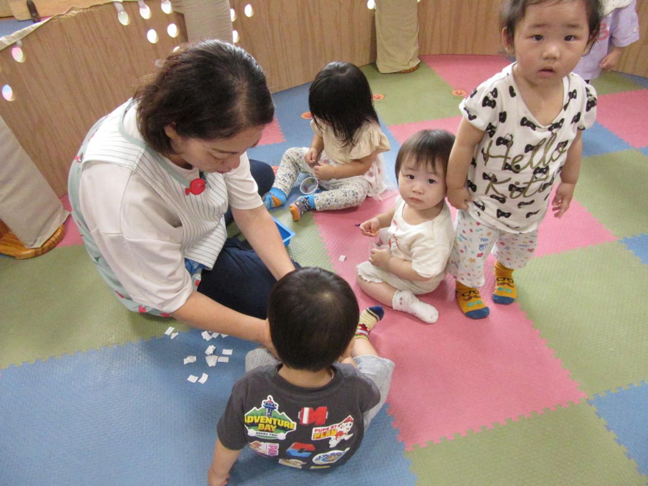 0,1歳児のお友達も、みんなで製作を楽しんでいます。