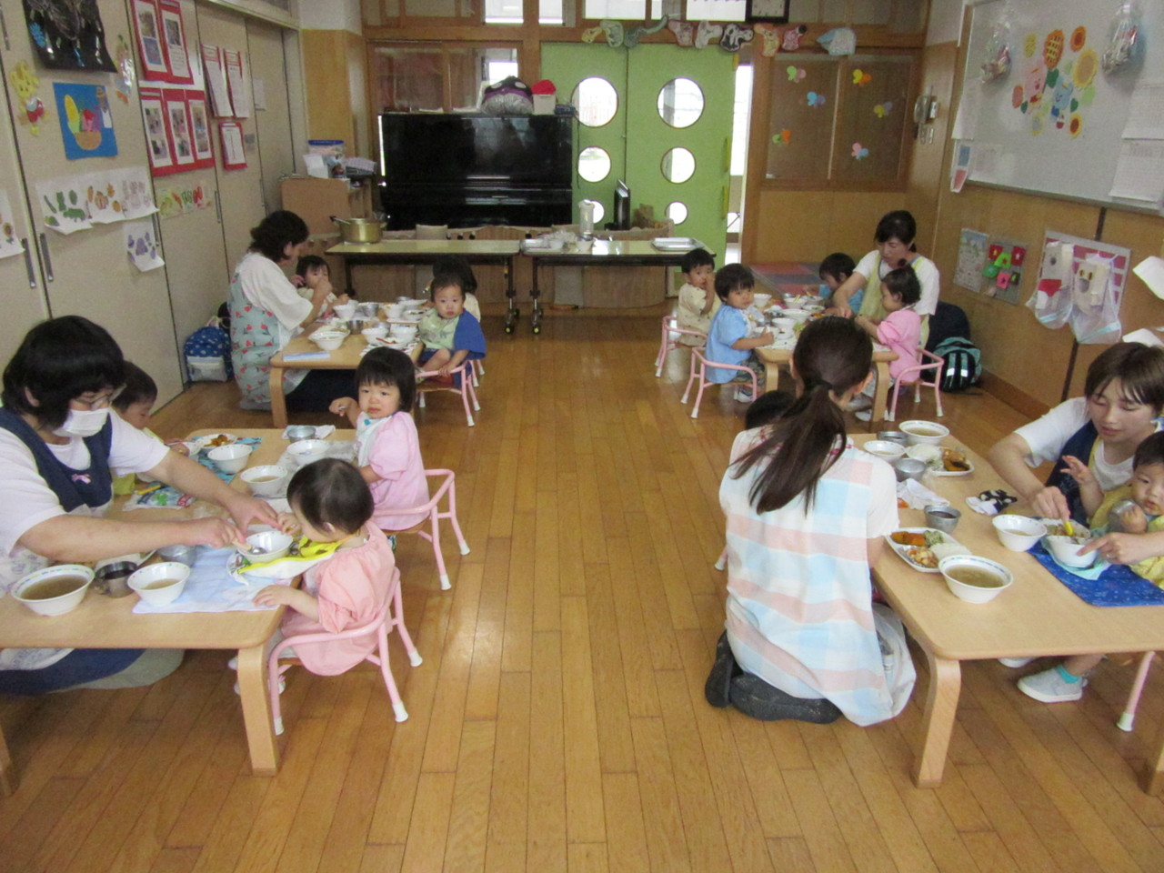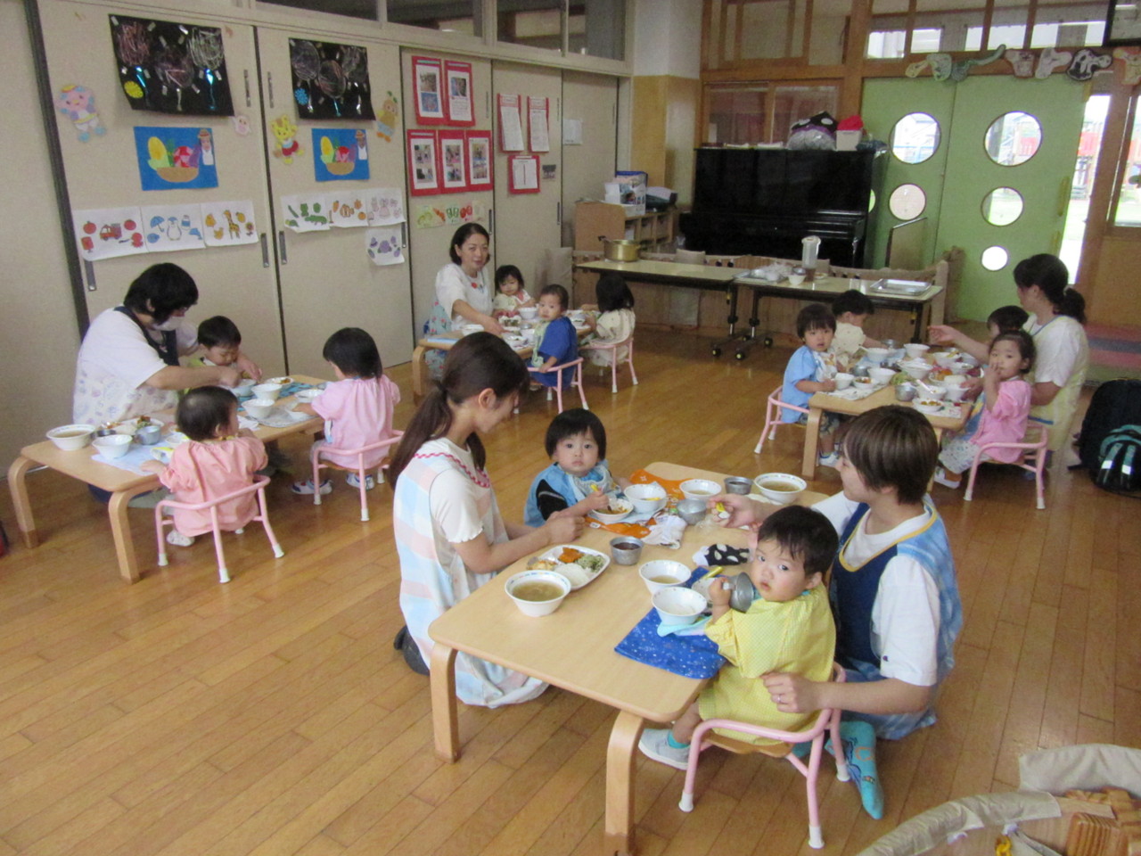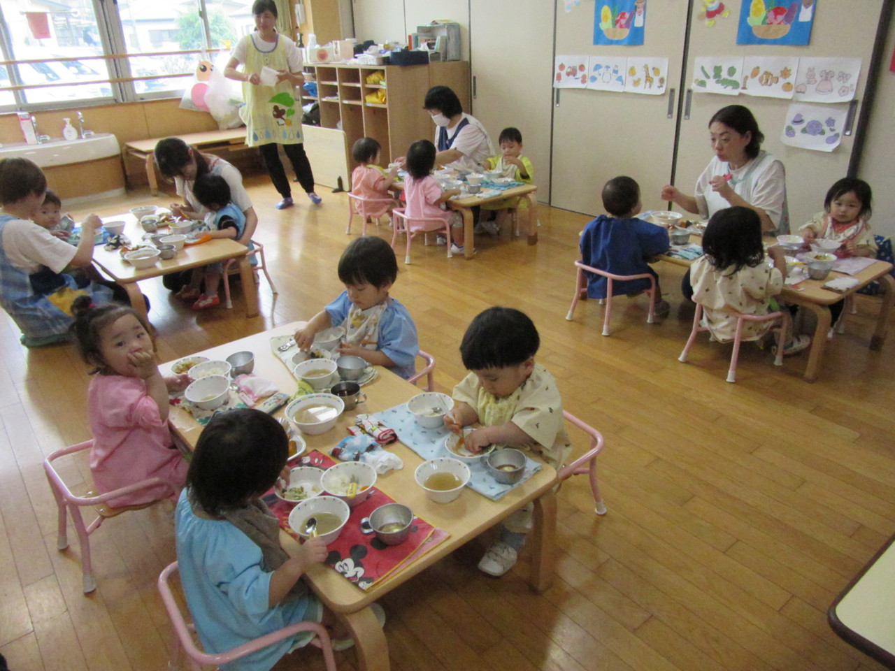 お給食もいっぱい食べてみんな元気に園生活をたのしんでいます。