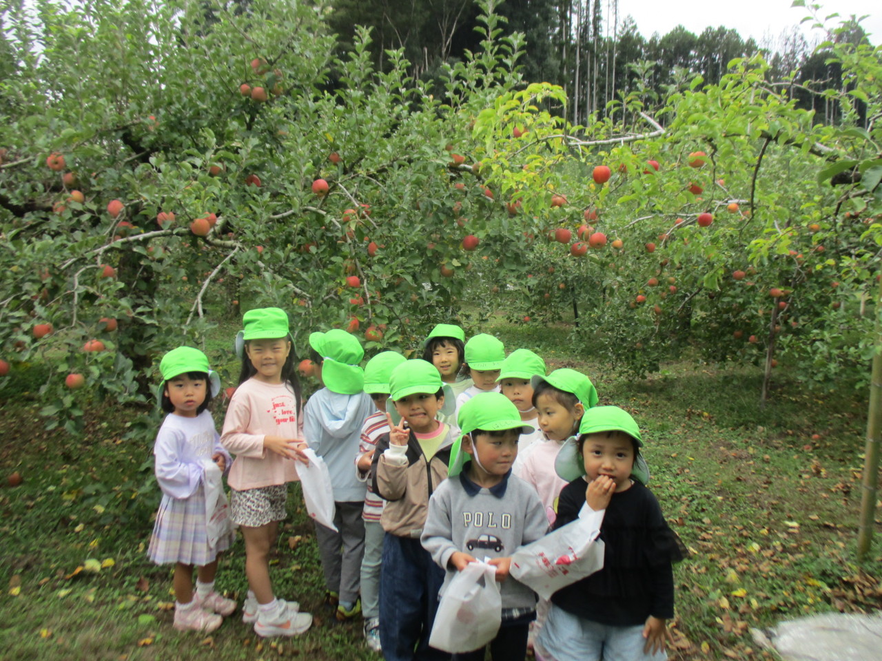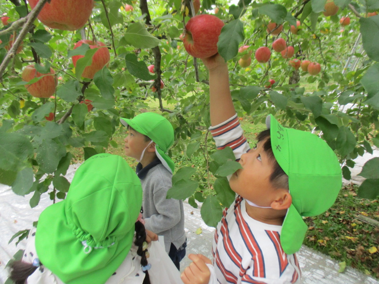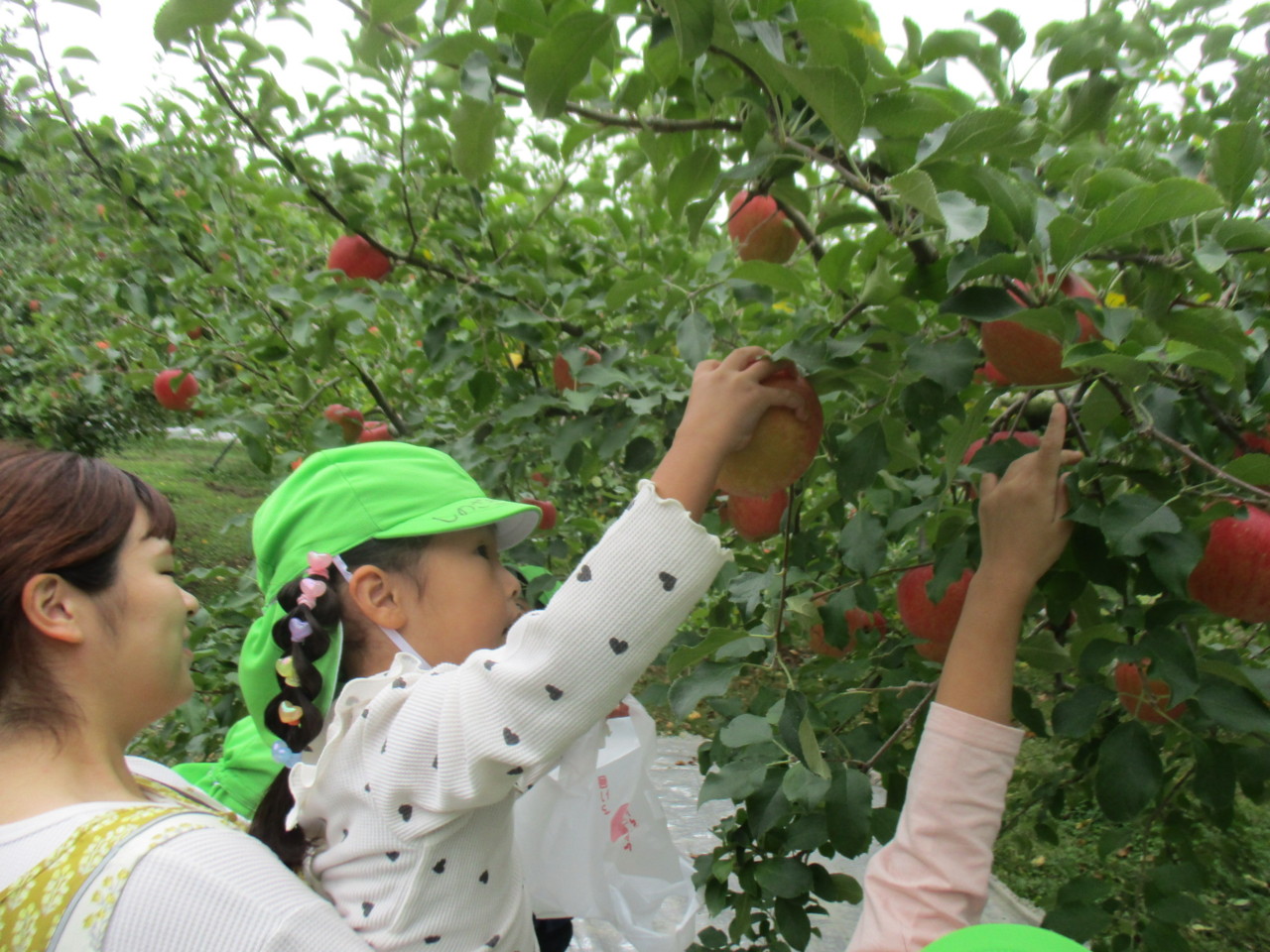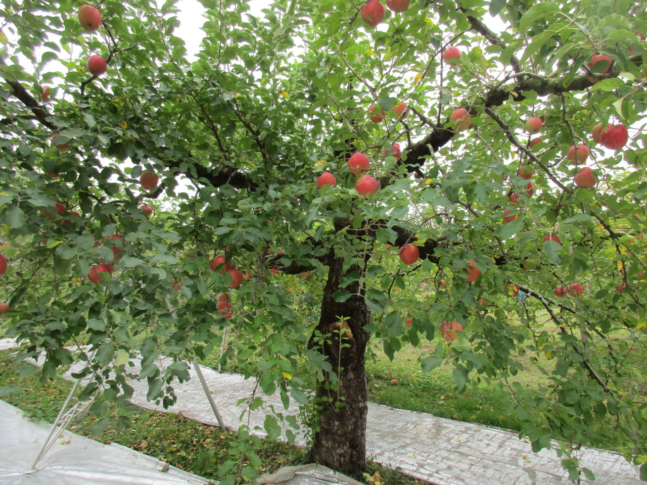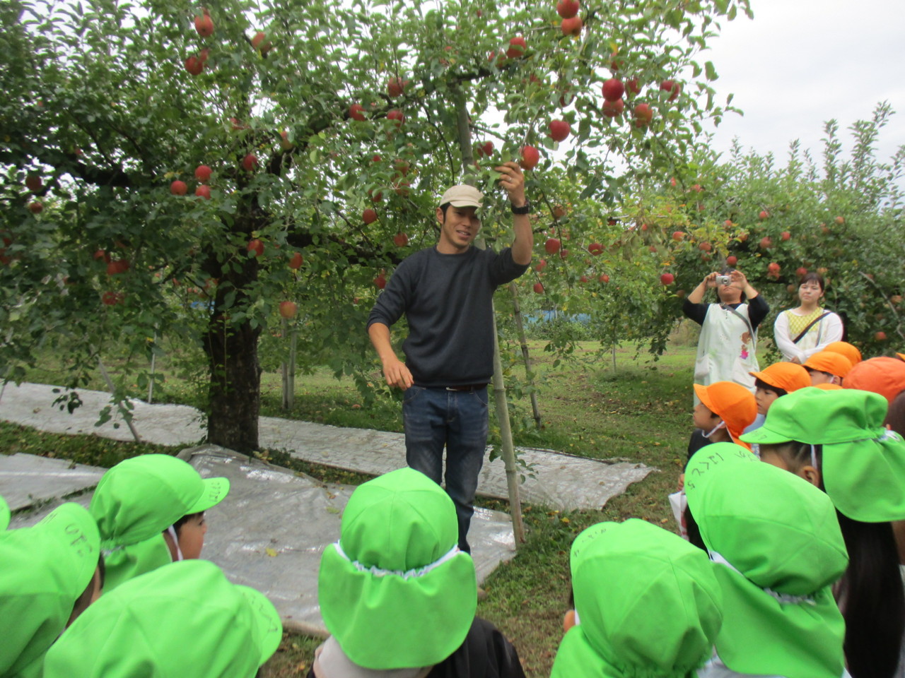 長井のりんご園に着くと、真っ赤に実ったりんごがたくさん実っていることに感激していました。