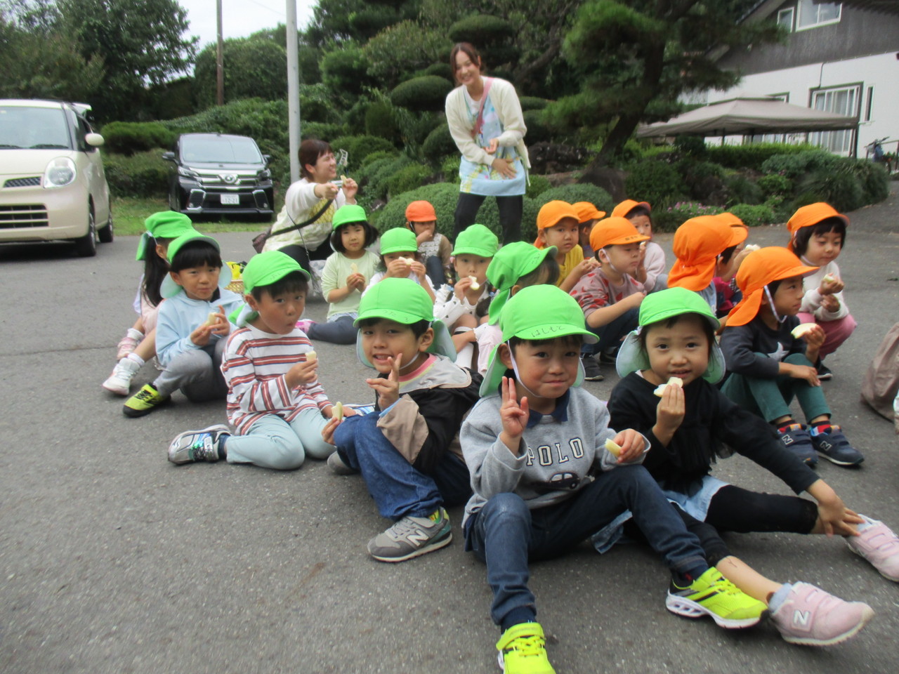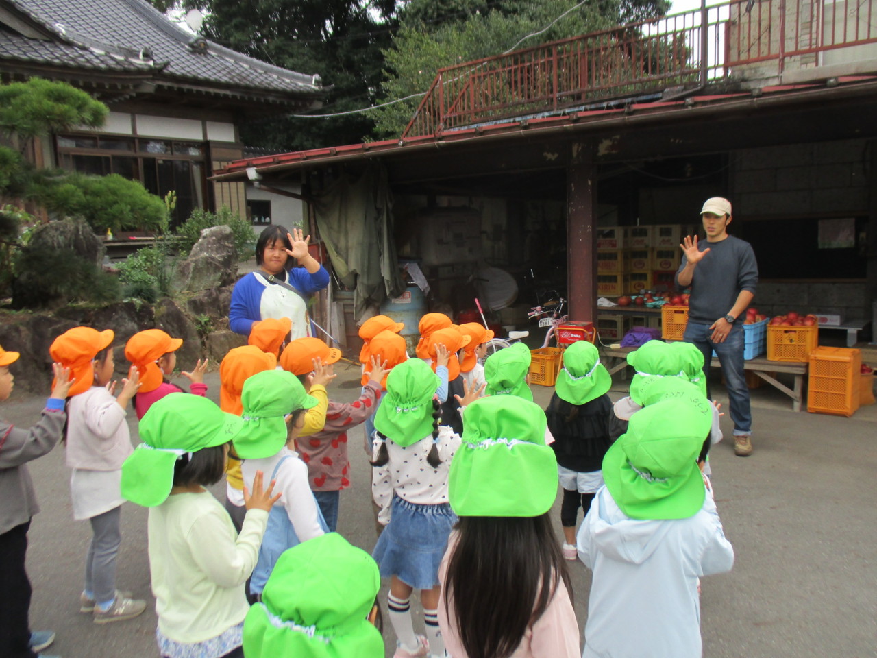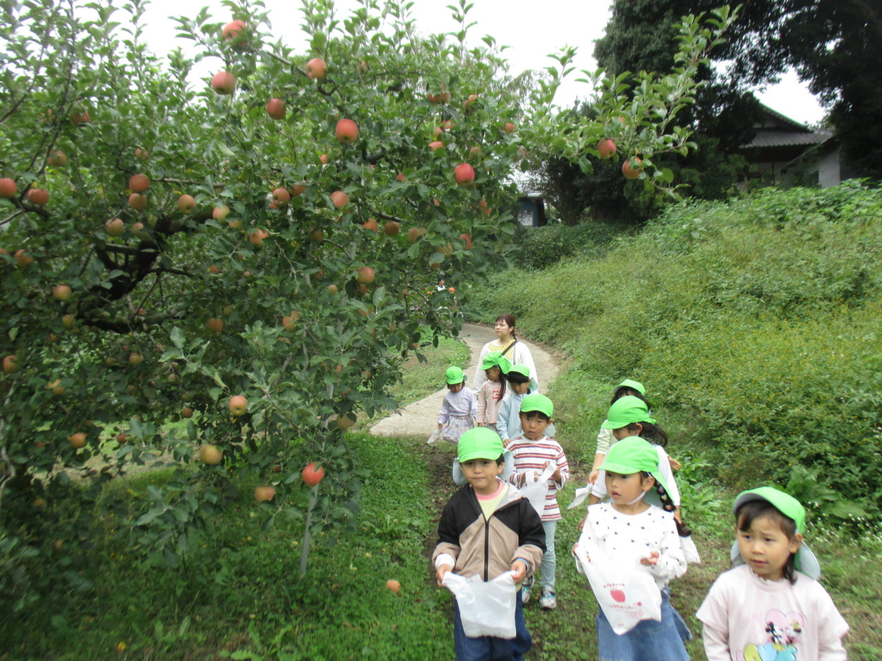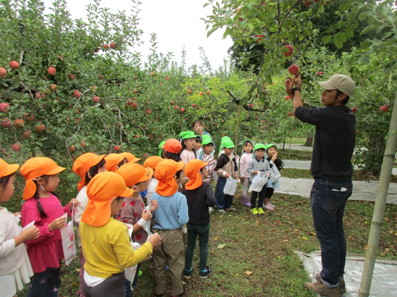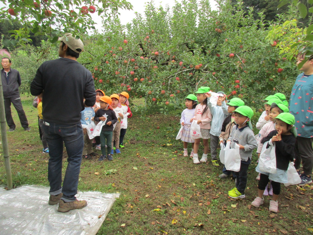 長井のりんご園に着くと、真っ赤に実ったりんごがたくさん実っていることに感激していました。