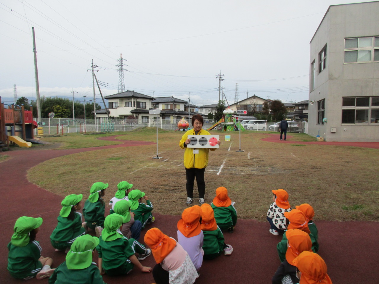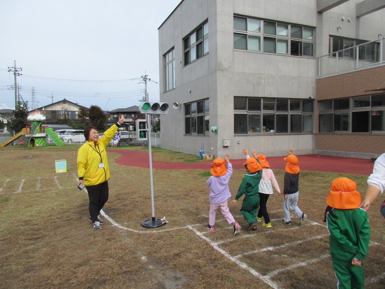 交通安全教室で、信号の見方、渡り方を教えていただきました。