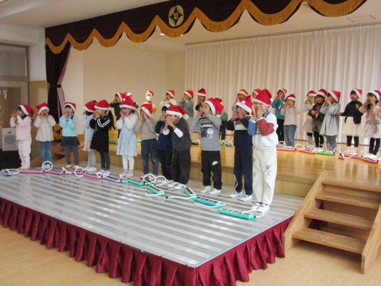 きりん組さんのメロディオンの発表を聞いたり、みんなで歌ったりしてクリスマス気分をたっぷりと味わいました。