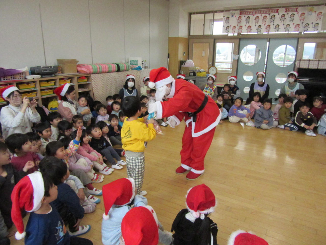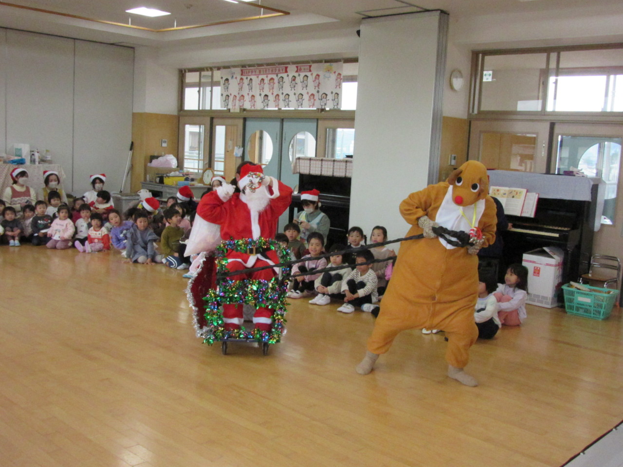 幼稚園にもサンタクロースとトナカイさんがやってきて、プレゼントを持ってきてくれました。