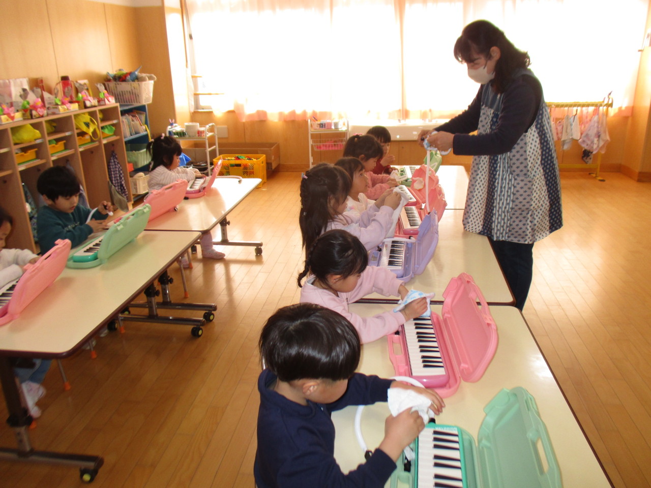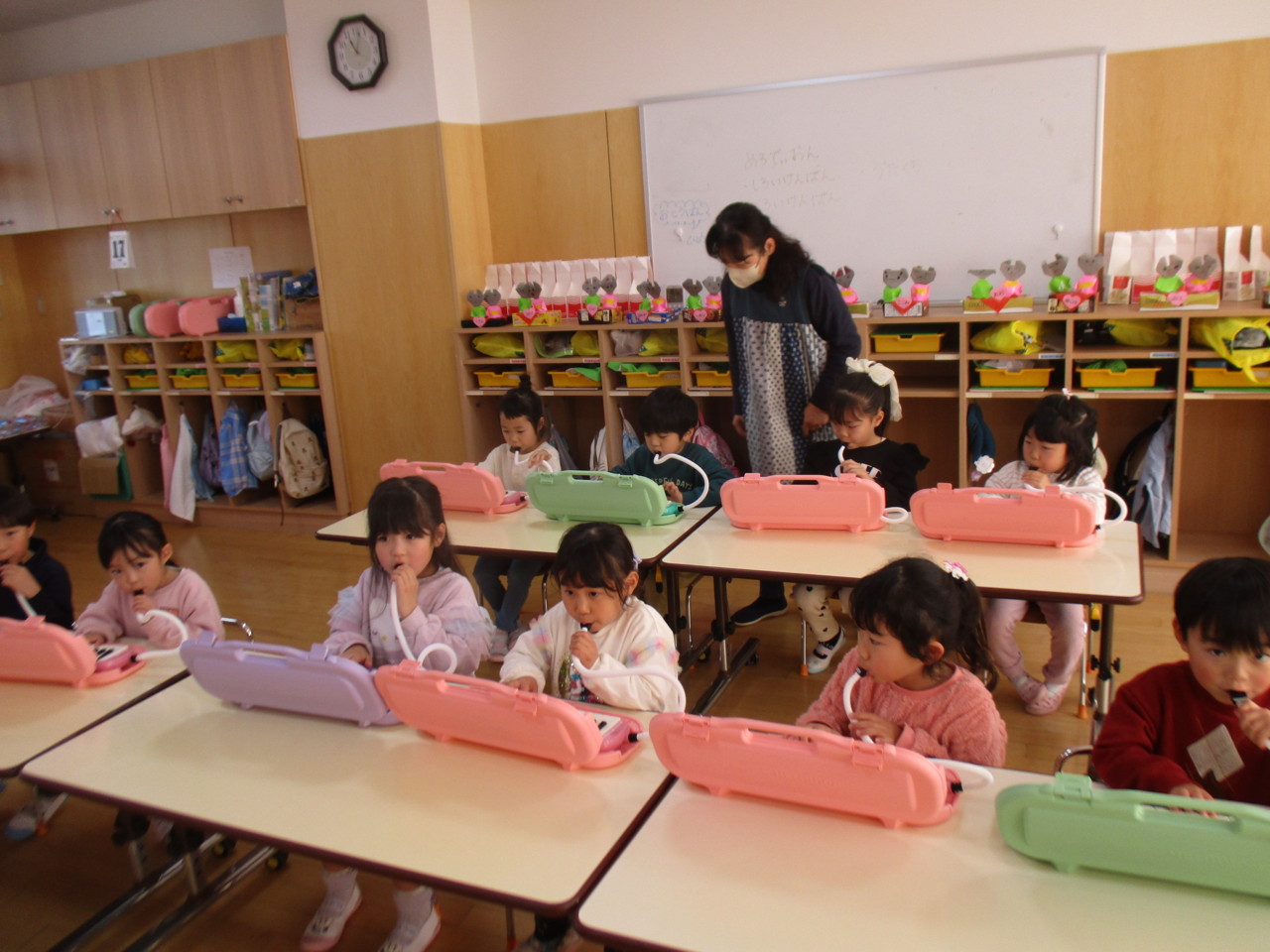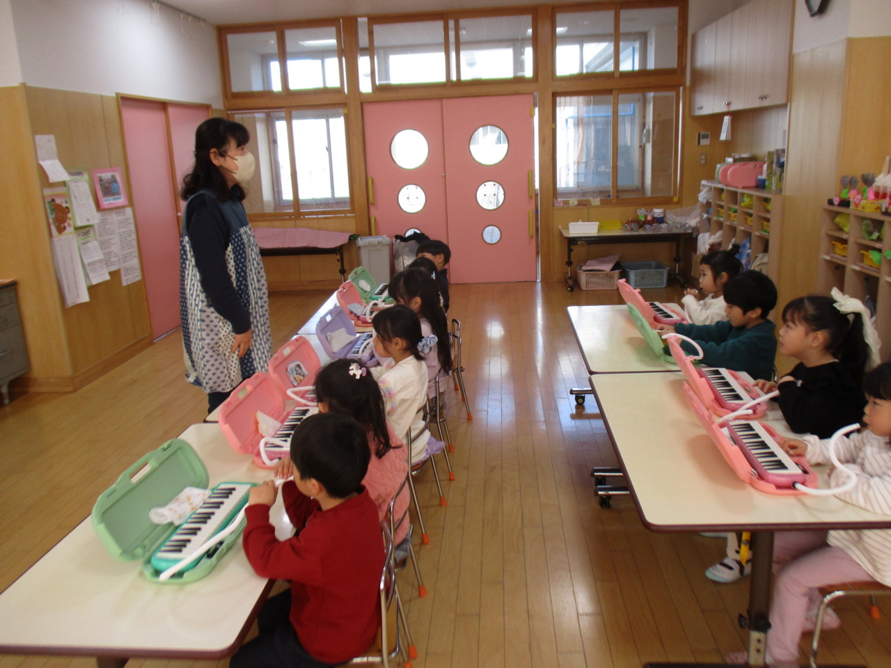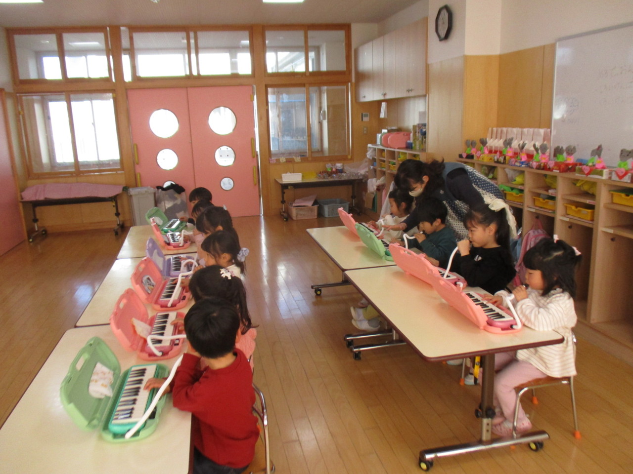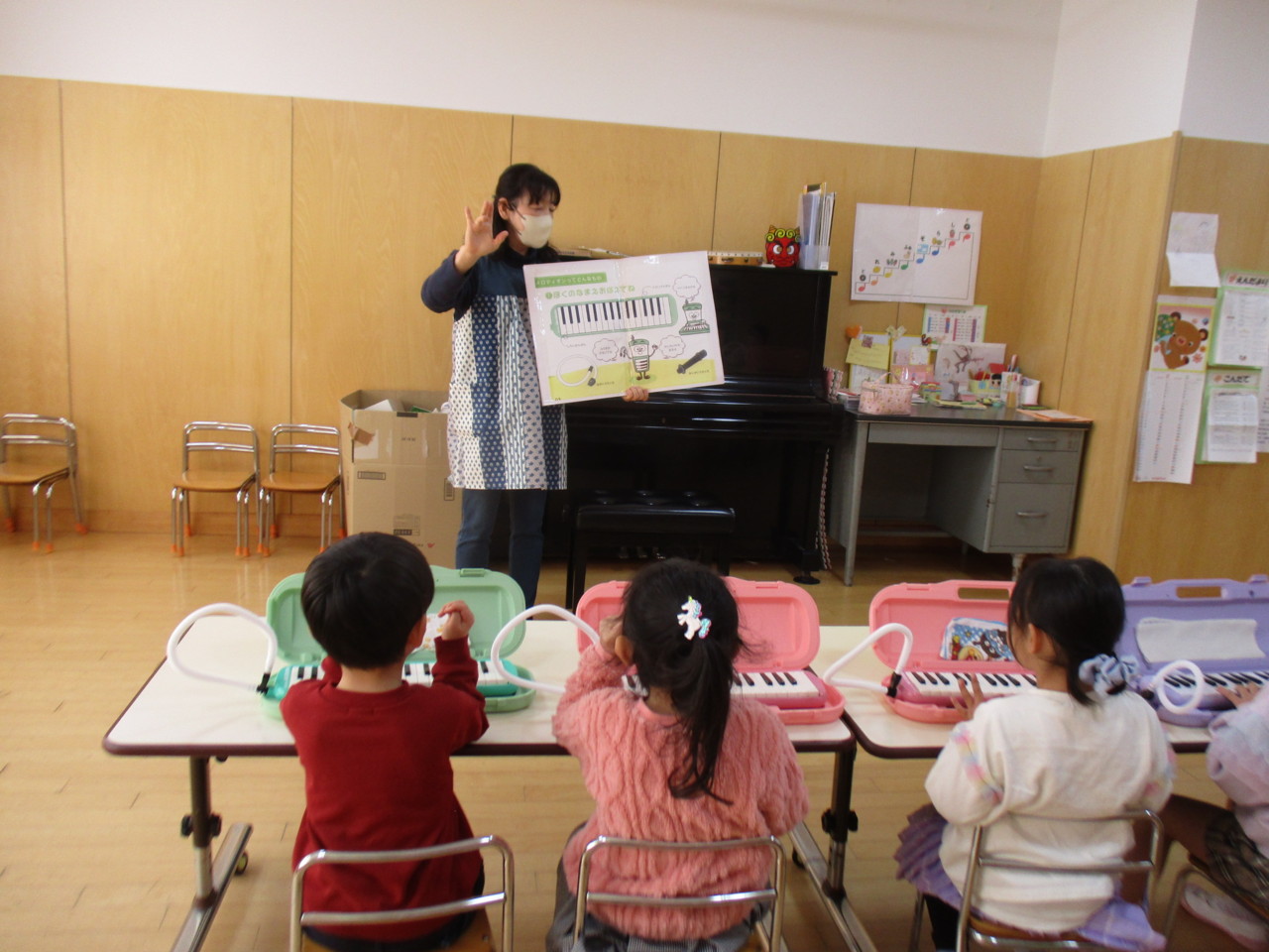 うさぎ組のリトミックでメロディオンが始まりました。