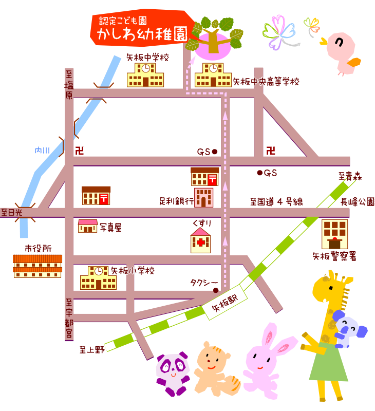 矢板駅より徒歩12分、矢板中央高等学校に隣接しています。
